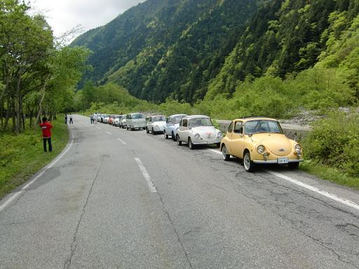 | 黒部ダムへ続く道はかなりの急坂でしたがスバル360たちは グングンと登っていきます。(除くサンバー) |