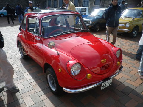 最上段の入り口には、 てつりん♪さん と 私(たけ)のサンバー。 わずかな年式の違いですが、 ちょうどマイナーチェンジが行われているので 違いを見比べようと、右見たり左見たりする方 たちが後を絶ちませんでした。 |