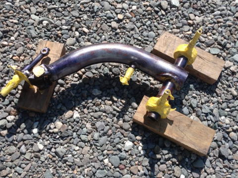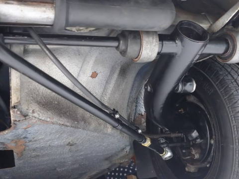 いよいよ取り付けです。 ジャッキにトレアムを乗せて車体に合体します。 これがメッチャ苦労しました。 |