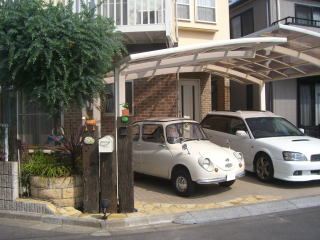 建物も庭もお洒落なのが羨ましいですね 実はスバルのために カースペースを拡げたんですよ! |